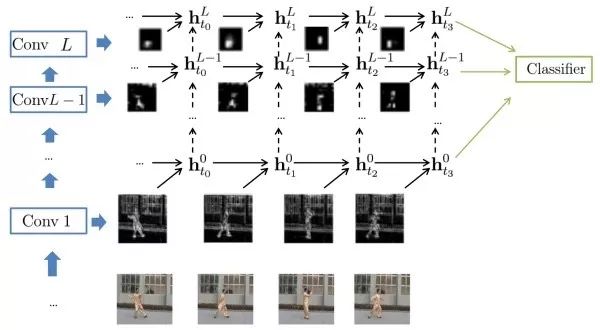 CNN+RNN捕获远距离依赖 之前的方法只能捕获几帧图像之间的依赖关系,这类方法旨在用CNN提取单帧图像特征,之后用RNN捕获帧之间的依赖。