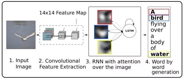 Show, attend, and tell 注意力(attention)机制是机器翻译中用于捕获长距离依赖的常用技巧,也可以用于看图说话。在解码网络中,每个时刻,除了预测下一个词外,还需要输出一个二维注意力图,用于对深度卷积特征进行加权汇合。使用注意力机制的一个额外的好处是可以对网络进行可视化,以观察在生成每个词的时候网络注意到图像中的哪些部分。