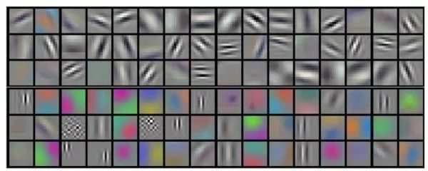 直接可视化第一层滤波器 由于第一层卷积层的滤波器直接在输入图像中滑动,我们可以直接对第一层滤波器进行可视化。可以看出,第一层权重关注于特定朝向的边缘以及特定色彩组合。这和生物的视觉机制是符合的。但由于高层滤波器并不直接作用于输入图像,直接可视化只对第一层滤波器有效。