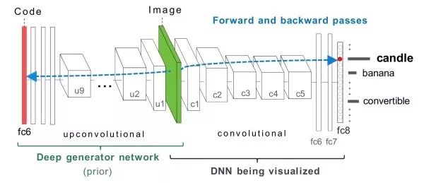 梯度上升优化 选择某一特定的神经元,计算某一特定神经元对输入图像的偏导数,对输入图像使用梯度上升进行优化,直到收敛。此外,我们需要一些正则化项使得产生的图像更接近自然图像。此外,除了在输入图像上进行优化外,我们也可以对fc6特征进行优化并从其生成需要的图像。