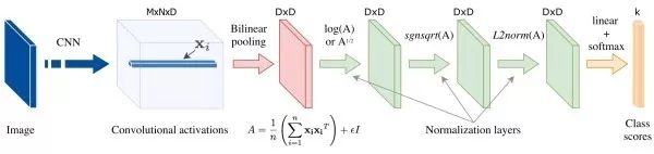 细粒度图像分类的经典做法是先定位出目标的不同部位,例如鸟的头、脚、翅膀等,之后分别对这些部位提取特征,最后融合这些特征进行分类。这类方法的准确率较高,但这需要对数据集人工标注部位信息。目前细粒度分类的一大研究趋势是不借助额外监督信息,只利用图像标记进行学习,其以基于双线性CNN的方法为代表。