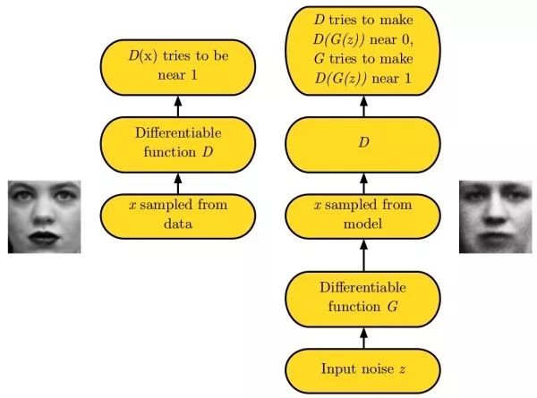 生成式对抗网络(generative adversarial networks, GAN)由于学习数据分布十分困难,生成式对抗网络绕开这一步骤,直接生成新的图像。生成式对抗网络使用一个生成网络G从随机噪声中生成图像,以及一个判别网络D判断其输入图像是真实/伪造图像。在训练时,判别网络D的目标是能判断真实/伪造图像,而生成网络G的目标是使得判别网络D倾向于判断其输出是真实图像。实际中,直接训练生成式对抗网络会遇到mode collapse问题,即生成式对抗网络无法学到完整的数据分布。随后,出现了LS-GAN和W-GAN的改进。和变分自编码器相比,生成式对抗网络的细节信息更好。以下链接整理了许多和生成式对抗网络有关的论文:hindupuravinash/the-gan-zoo。以下链接整理了许多训练生成式对抗网络的其技巧:soumith/ganhacks。