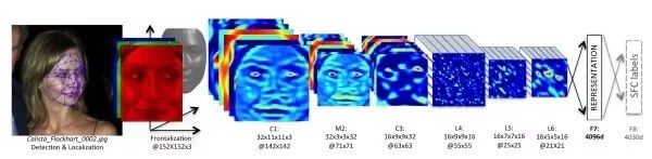 DeepFace 第一个将深度神经网络成功用于人脸验证/识别的模型。DeepFace使用了非共享参数的局部连接。这是由于人脸不同区域存在不同的特征(例如眼睛和嘴巴具有不同的特征),经典卷积层的“共享参数”性质在人脸识别中不再适用。因此,人脸识别网络中会采用不共享参数的局部连接。其使用孪生网络(siamese network)进行人脸验证。当两张图像的深度特征小于给定阈值时,认为其来自同一个人。