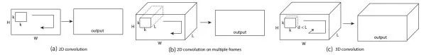 三维卷积 将经典的二维卷积扩展到三维卷积,使之在时间维度也局部连接。例如,可以将VGG的3×3卷积扩展为3×3×3卷积,2×2汇合扩展为2×2×2汇合。