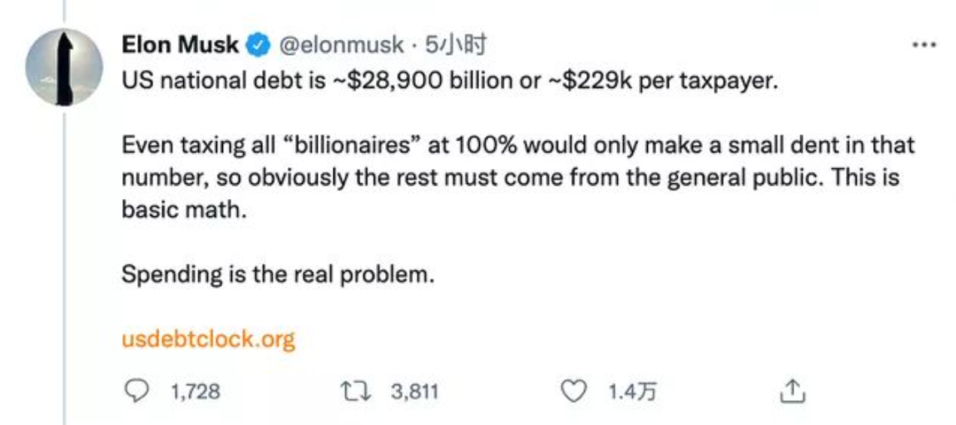 「就算所有亿万富翁把钱100%全交了税,也是杯水车薪,交税大头还是普通民众,小学数学就能算清。开销才是真正的问题」