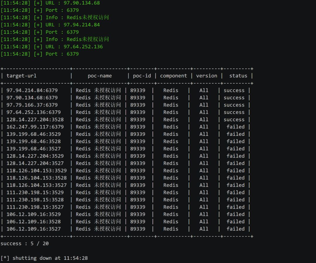 4、 可从CIDR、本地文件、Redis、数据库、Zoomeye和Shodan等来源加载多个测试目标;