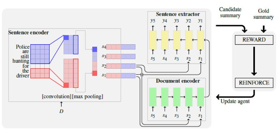 这篇论文也是自动摘要,跟前两篇论文生成『字词』序列变成一段文本不同,这篇论文是做抽取式摘要,所以是抽取『句子』序列变成一段文本。