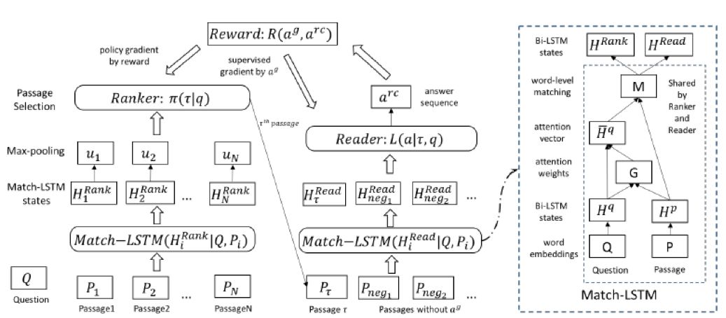 这篇论文在本人之前的阅读理解综述文章里有提到,但当时并未过多关注强化学习部分,这里我们重新审视一下这个算法,关于机器阅读理解的基础理论不再赘述。