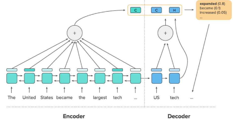套用的是目前生成式摘要领域的state-of-art 方法: copynet——即在解码过程中,除了考虑待预测词表上的概率分布,还额外考虑输入序列的注意力权重形成的概率分布,使得预测的时候能从输入中『copy』候选词,更细节的部分就不展开了。