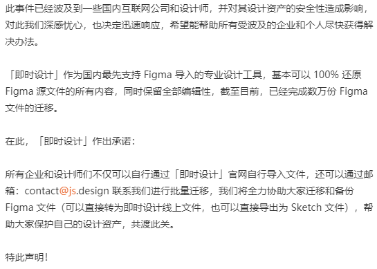 即时设计:“基本可以 100% 还原 Figma 源文件的所有内容,同时保留全部编辑性,截至目前,已经完成数万份 Figma 文件的迁移。”