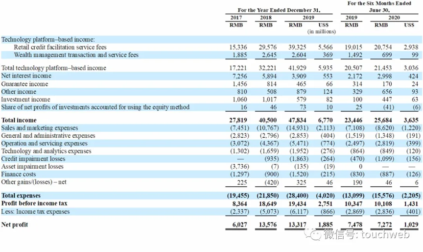 同为金融科技巨头的蚂蚁金服和京东数科,上半年营收分别为725.28亿元和103.27亿元,蚂蚁金服的净利润为219.23亿元,京东数科的净亏损为6.7亿元。横向对比,可以看到陆金所控股的实力不容小觑。