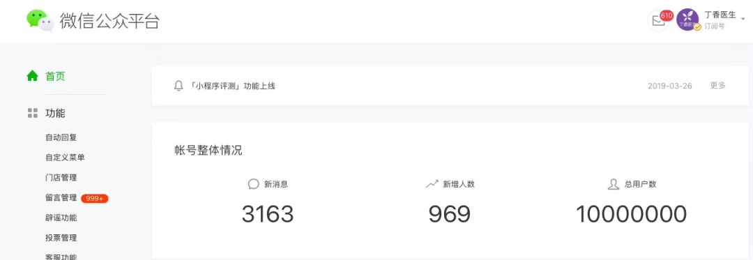 新榜讯 4月9日,微信公众号「丁香医生」粉丝破1000万,加入千万粉丝俱乐部。