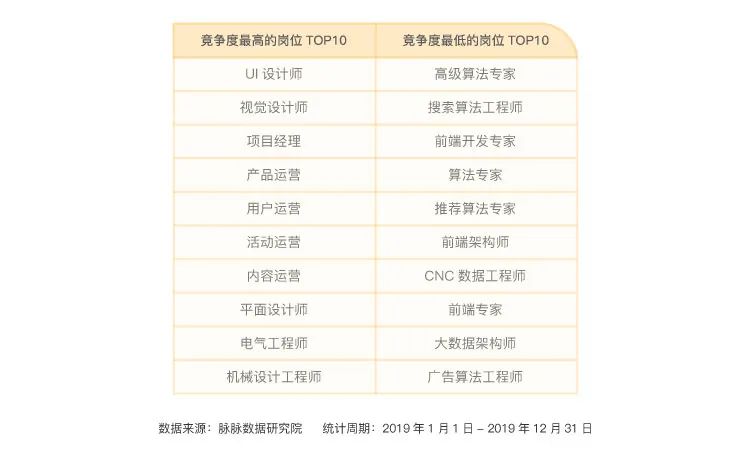 1.设计与运营人才求职压力位居前列 ,算法人才供不应求