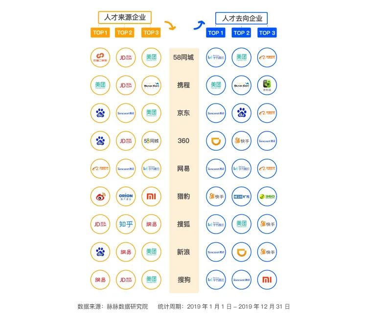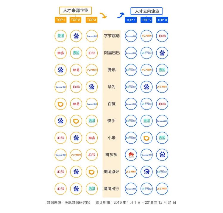 而2019年,京东也成为了新的人才输出大户,华为、美团点评、滴滴出行和搜狐搜狗等,都是京东人才流向的主要公司。