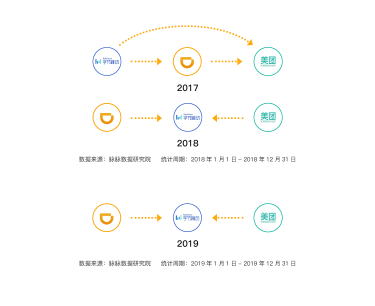 而TMD之间,从2018年开始就形成了字节跳动单方面吸纳美团点评和滴滴出行两家人才的局面。