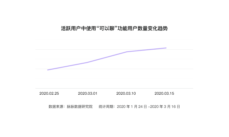 虽然部分企业的减员会释放出部分人才,但由于显著比例的求职者推迟跳槽,企业的招聘将面临更多压力。不过,推迟跳槽并不代表求职者对新职业机会采取拒绝态度。脉脉平台大数据显示,从2020年2月25日到3月15日的短短20天时间,使用“可以聊”功能的活跃用户数量便增长了1.8倍。“可以聊”是脉脉针对观望机会的人才,所推出的轻意向表达功能。点击“可以聊”意味着该位人才虽然没有主动投递简历,但实则对机会持开放态度。企业需要采用社交互动,长期沟通管理等方式,提升针对这类“待机”人才的获取效率。