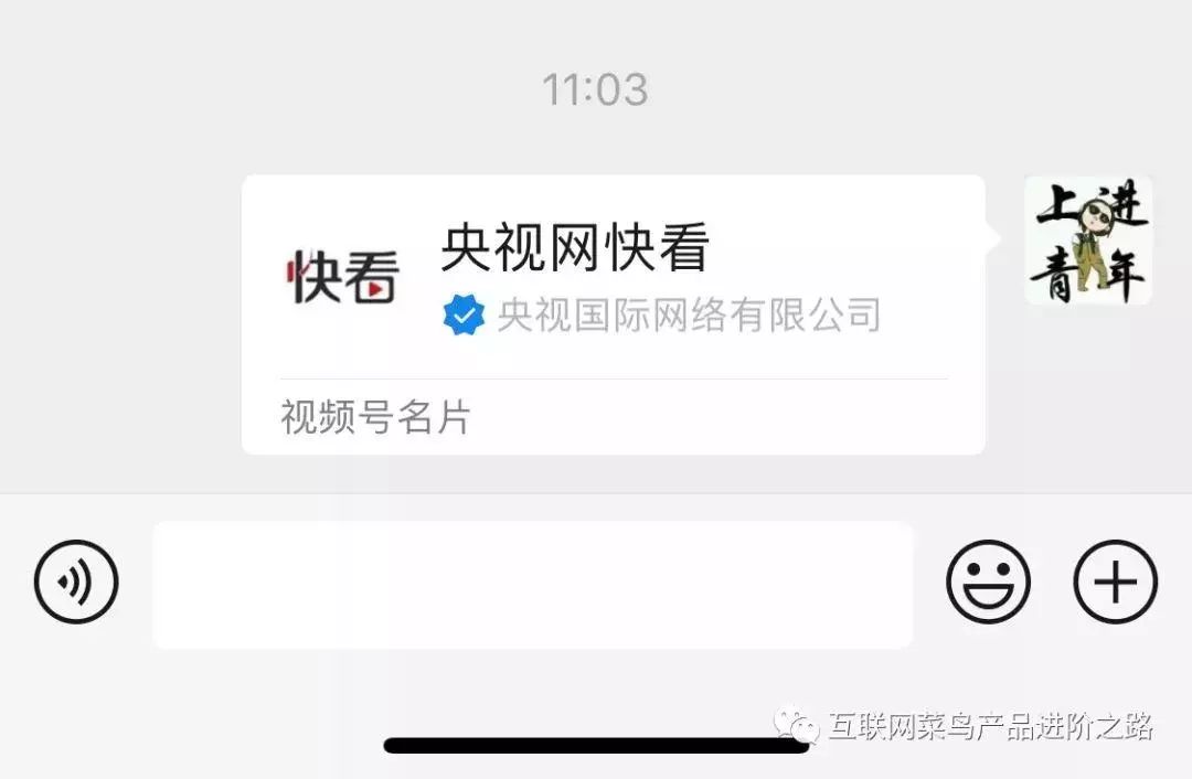 这是我分享到群的展现形式,其形式类似于底部多了一个“视频号名片”的微信名片,点击进去是视频号个人展示页。