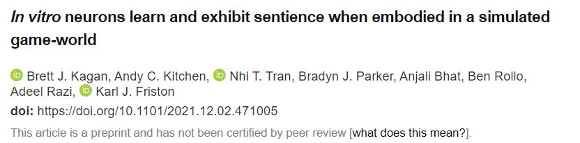 「我们的研究结果表明,在模拟的游戏世界中,一层体外皮层神经元可以自组织并表现出智能、有感知的行为。」Kagan 表示。