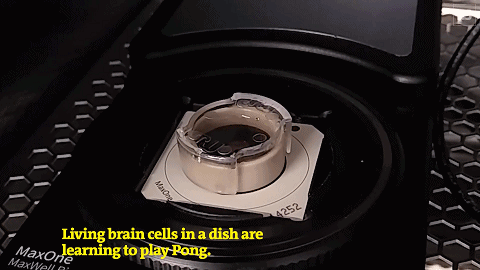 这些细胞玩的是一个简易版的 Pong,没有对手。它们的下面是一些微电极阵列。「我们认为把它们叫做『半机械脑(cyborg brain)』非常合适。」Cortical Labs 的首席科学官 Brett Kagan 表示。