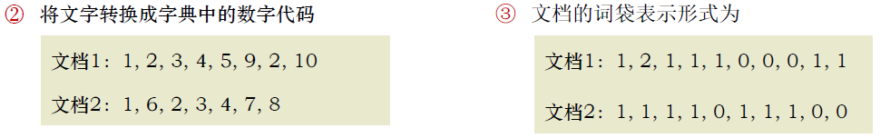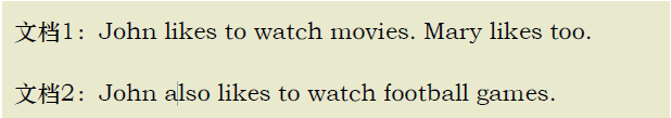词袋模型就是忽略文章中的语法和语序,仅仅用一组无序的词表示这样一篇文章,观察如下两篇文章:
