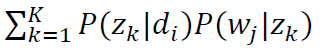 对于第i篇文章的第j个词(wi,j),其似然为: