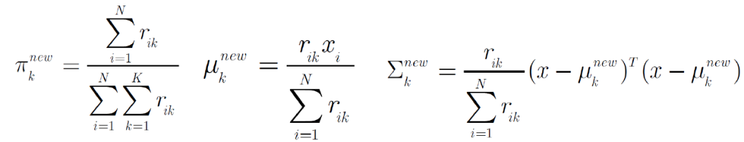 通过推导,我们能得到高斯混合模型中的混合比例,均值,协方差矩阵:
