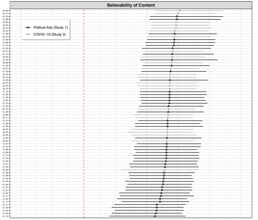 第二项研究采用相同形式,不过观看内容不是政治广告,而是取自 YouTube上的 24 个关于新冠流行的视频。