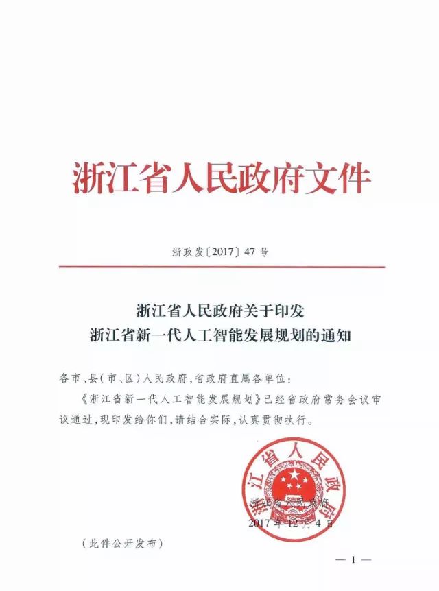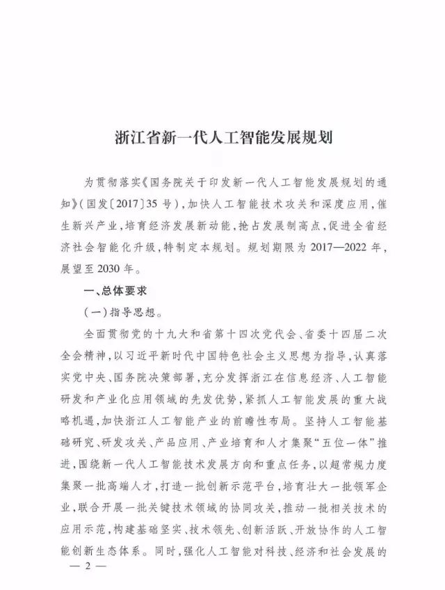 《浙江省新一代人工智能发展规划》