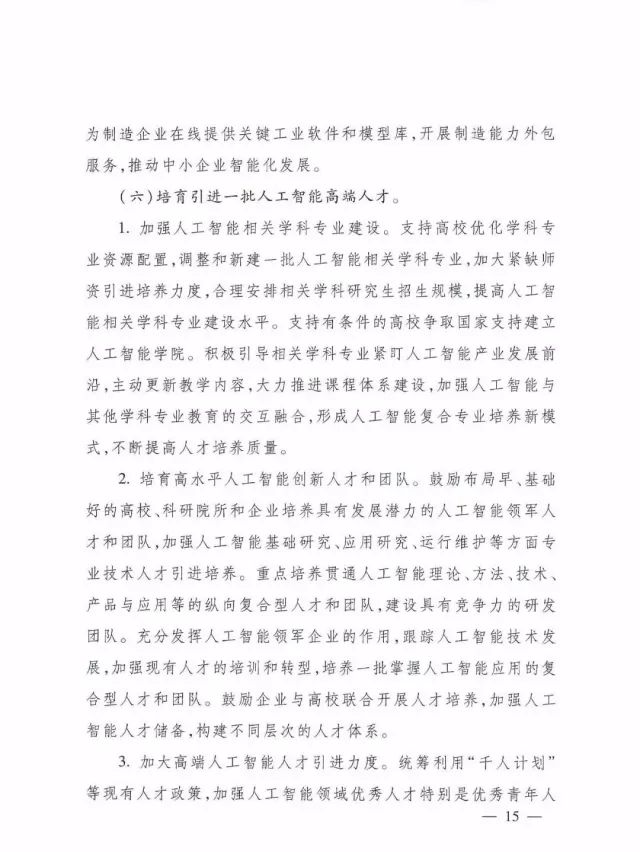 (六)培育引进一批人工智能高端人才。