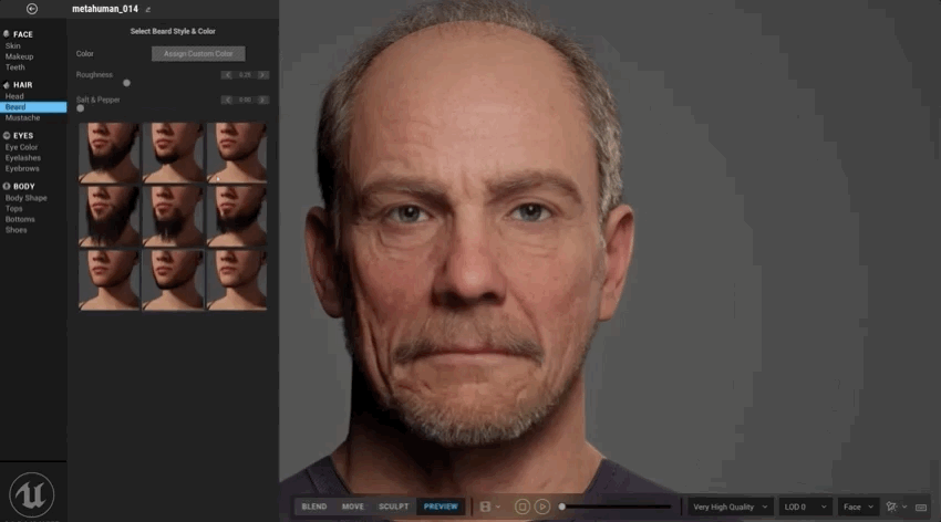 从官网描述中可以发现,你可以在大约30种发型中进行选择,可以使用Unreal Engine基于发束的毛发,也可使用适合低端平台的发片。