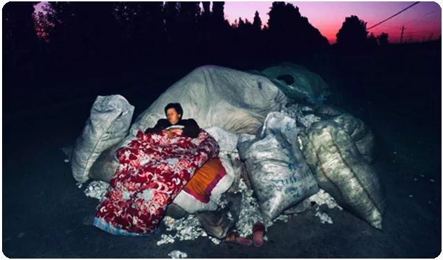 80%的采棉工是女性,特别是来自农村的妇女。她们怀揣希望、欢笑、泪水和淡淡的乡愁,像候鸟一样来回迁徙。她们肩挎棉布袋,早出晚归,弯腰采棉,一天能采摘一百公斤,两个月下来能赚一万多元工钱。这是属于她们的西行淘金路,为此她们不计较简陋的住宿,不怕吃苦,唯一的目标就是好好劳动,多多挣钱。