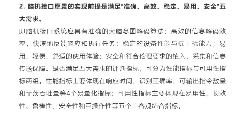 近日,中国信通院正式发布《脑机接口总体愿景与关键技术研究报告(2022年)》,针对脑机接口这一前沿领域,全球首次从愿景、需求、场景、技术、系统衡量指标几个维度开展研究,对该领域的科研攻关、产品研制和政策研究具有参考价值。
