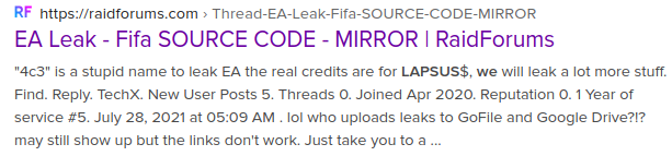 在地下论坛帖子中,一位用户写道:「针对游戏巨头EA的黑客攻击,要归功于Lapsus$,更多的内容会被泄露。」