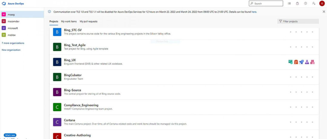 周日清晨,Lapsus$在Telegram上发布了一张内部源代码库的截图,内容似乎是从微软云计算部门Azure的内部开发人员帐户中黑进去得到的信息。