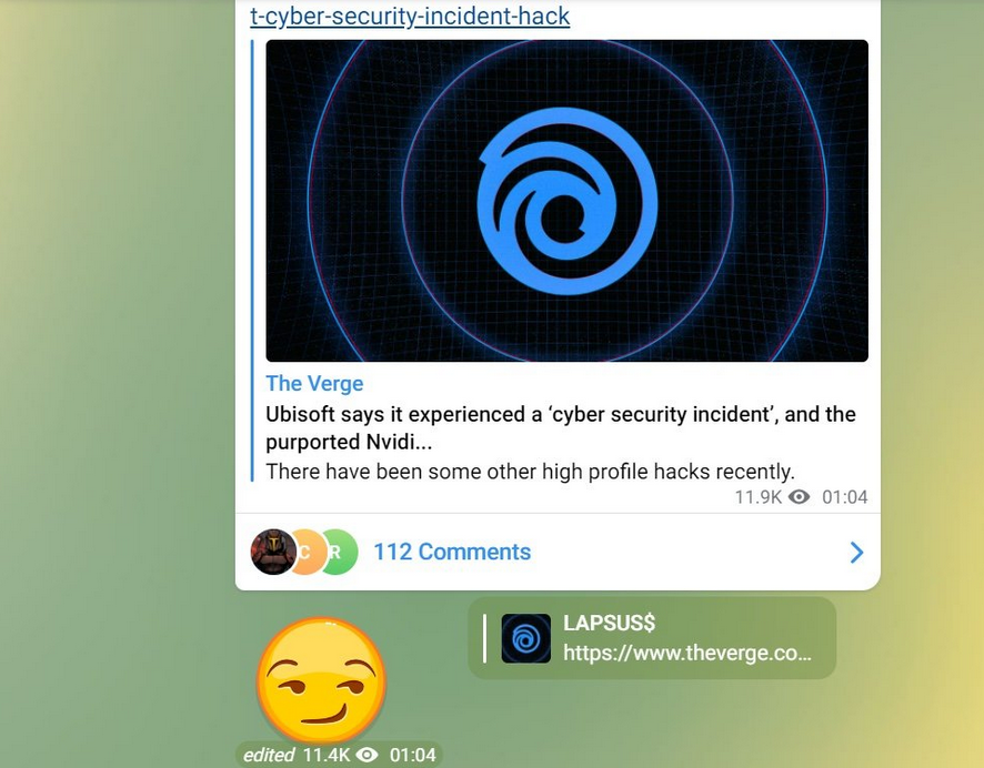 在2022年3月的育碧被黑事件中,Lapsus$也暗示自己是幕后的主使。