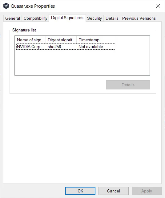而使用英伟达的代码签署证书则会导致反病毒引擎信任可执行文件,而不将其检测为恶意软件。