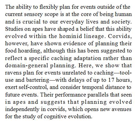 乌鸦与类人猿平行进化出对工具使用和以物易物的灵活计划性