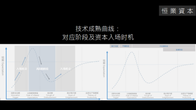 一张产业互联网全景图,能把整个演进过程给说的很清楚,如果探索阶段也算的话,实际上在一九三几年就有人开始研发一些跟计算机相关的底层技术了,互联网也是用了将近三四十年的时间才得以普及,而我们现在更关注的是去看哪些技术开始进入爆发期。另外任何赛道的爆发,都不是偶然的,都有个很重要的原因就是社会的底层基础设施开始不断更迭。比如在这张图上,可以看到技术应用和网络演进就是基础设施更是前置条件。如果从时间节点推断,一项技术从底层到产业化的爆发期至少需要50年;从资本视角来看,要看爆发阶段,3到5象限才是可以产业化复制的。