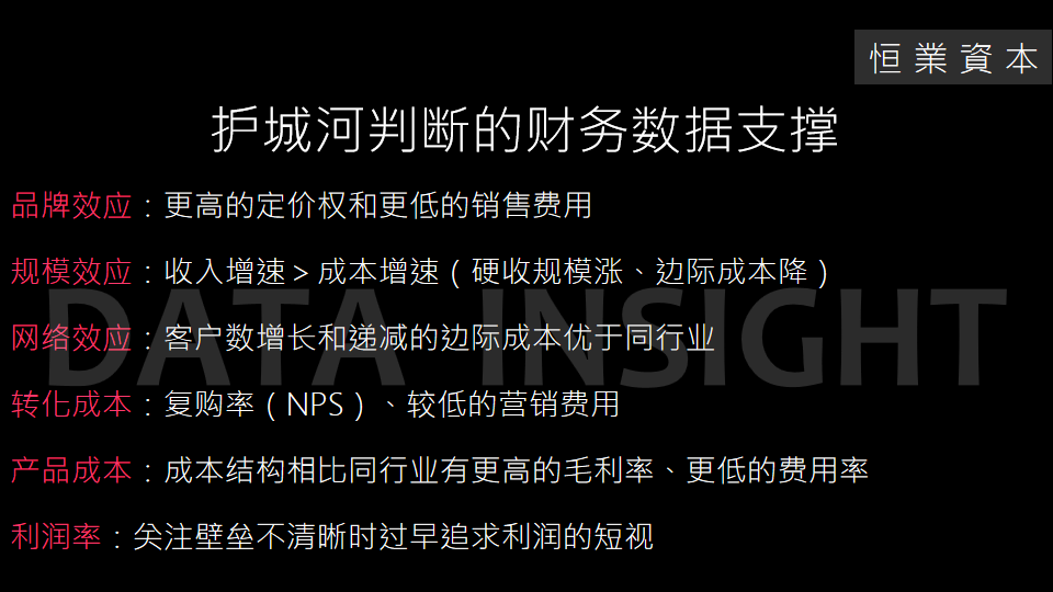 江一:很多泡沫都会碎,反观人类史,都是在泡沫生长和碎裂中前行,所以只要碎过的沫比原来的泡要大就行了。《Economic Moats》是Warren E.Buffett先生提出来的,伟大之处就在于可持续。《Economic Moats》护城河理论,包括了四个维度分别是:无形资产、网络效应、用户转化成本、产品提供成本。当然了,护城河是动态的、不断创新、永不止步。