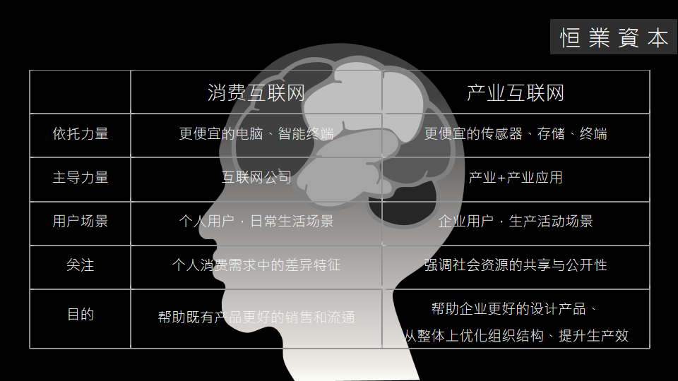 我们在回看到中国市场,目前中国经济正处于升级换挡的关键时期,继续从资源密集型向技术密集型升级。在产能过剩的经济大背景下,如何降低生产经营成本,提升生产经营效率,向价值创造靠拢,是每个企业在范式转换时必须思考的命题。而产业互联网的使命就是用以互联网为基础的新技术解决这一问题,作为我们就是要寻找方向,抓住重点,关注大概率,大问题、大方向。