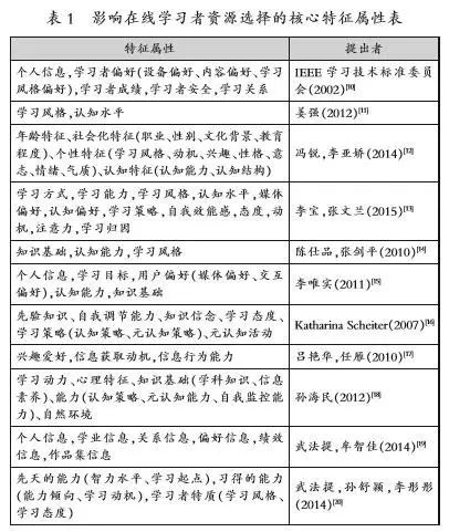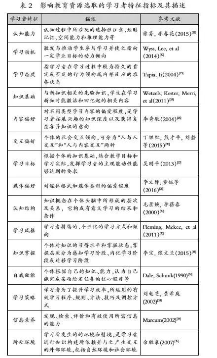 (一)影响教育资源选择的学习者特征属性提取