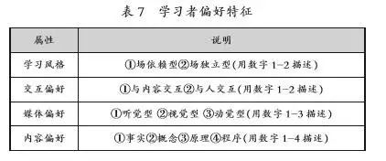 学习者偏好特征模型主要涵盖作为核心因素的学习风格以及由学习风格决定的交互偏好、媒体偏好和内容偏好。具体如表7所示。