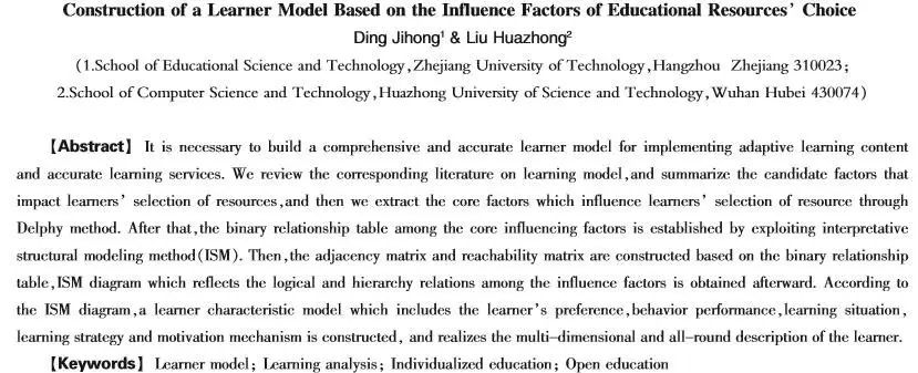 当前,关于学习者模型的研究颇多,但对影响学习者资源选择的学习者模型关注较少。通过研究,我们试图回答,学习者的哪些属性真正影响其教育资源选择,并厘清这些属性之间的层级关系。