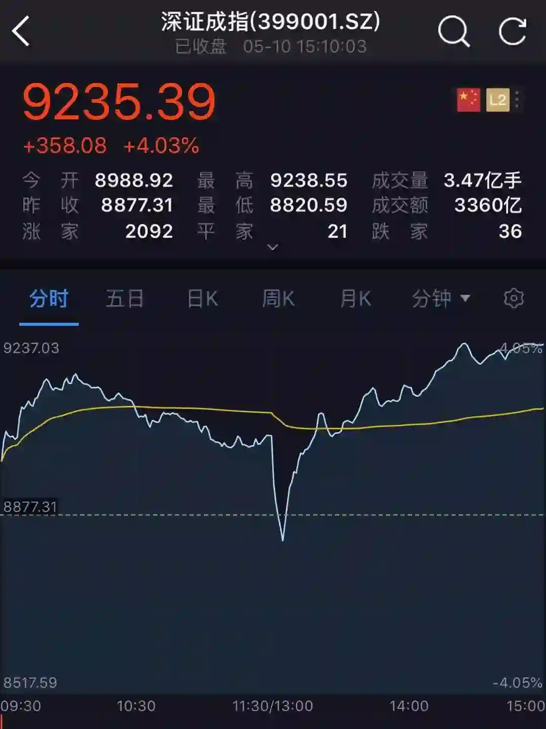 股市竟然跟打了鸡血一样,不要怂就是干,愿谈则谈,要打便打!竟然全部V回去,还创出了日内新高。