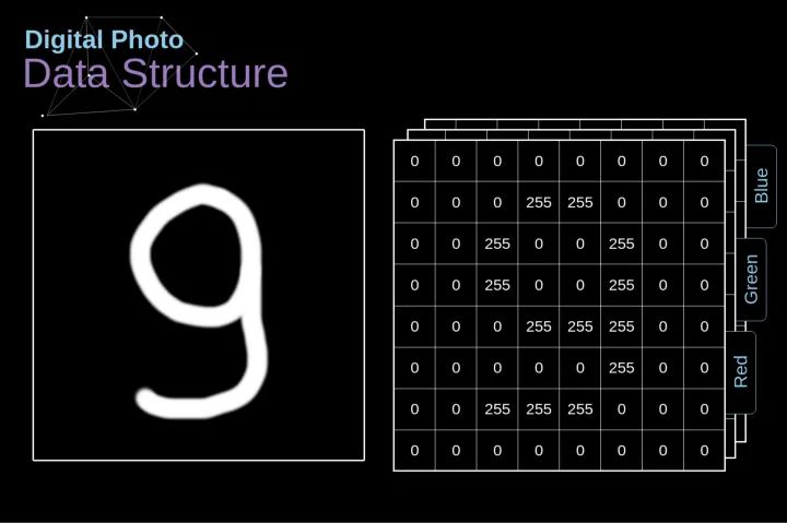 让我们先花一些时间来解释数字图像是如何存储的。你们大多数人可能知道它们实际上是由很多数字组成的矩阵。每一个这样的数字对应一个像素的亮度。在RGB模型中,彩色图像实际上是由三个对应于红、绿、蓝三种颜色通道的矩阵组成的。