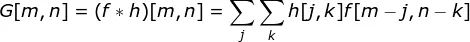 核卷积不仅用于神经网络,而且是许多其他计算机视觉算法的关键一环。在这个过程中,我们采用一个形状较小的矩阵(称为核或滤波器),我们输入图像,并根据滤波器的值变换图像。后续的特征map值根据下式来计算,其中输入图像用f表示,我们的kernel用h表示,结果矩阵的行和列的索引分别用m和n表示。