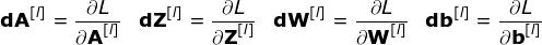 我们的任务是计算dW[l]和db[l]——它们是与当前层参数相关的导数,以及dA[l -1]的值——它们将被传递到上一层。如图10所示,我们接收dA[l]作为输入。当然,张量dW和W、db和b以及dA和A的维数是相同的。第一步是通过对输入张量的激活函数求导得到中间值dZ[l]。根据链式法则,后面将使用这个操作得到的结果。