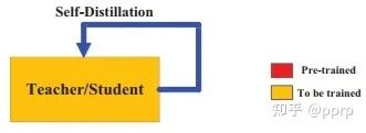 在自蒸馏中,教师和学生模型使用相同的网络。自蒸馏可以看作是在线蒸馏的一种特殊情况,因为教师网络和学生网络使用的是相同的模型。