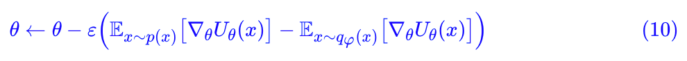 1. 推导了能量分布下的正负相对抗的更新公式;