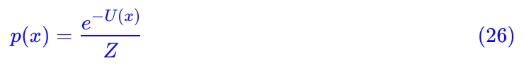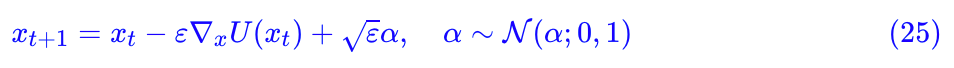 也就是说,给定能量函数 U(x) 后,我们可以通过式 (25) 实现从能量分布中采样,这就是能量分布的 MCMC 采样的原始思想。